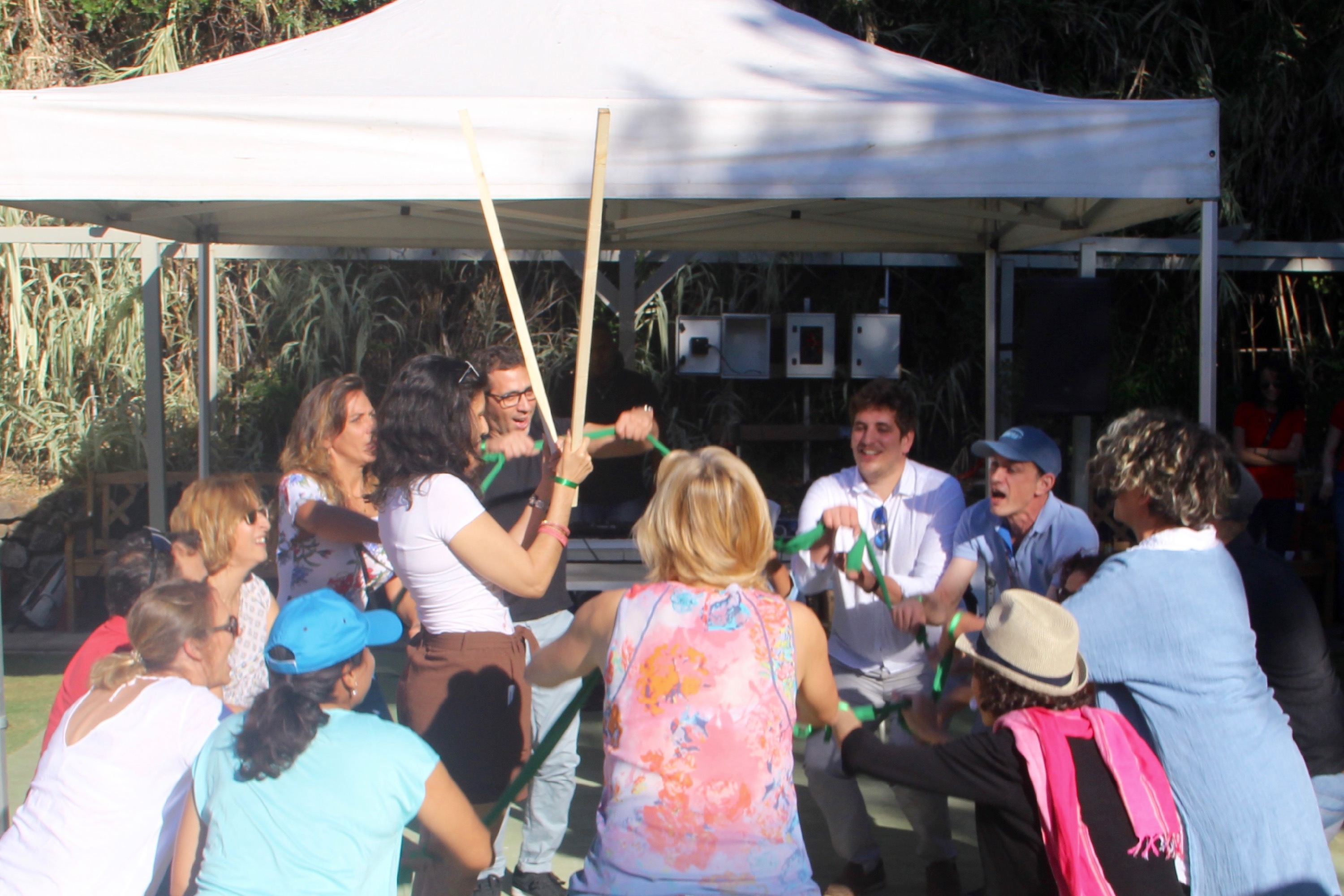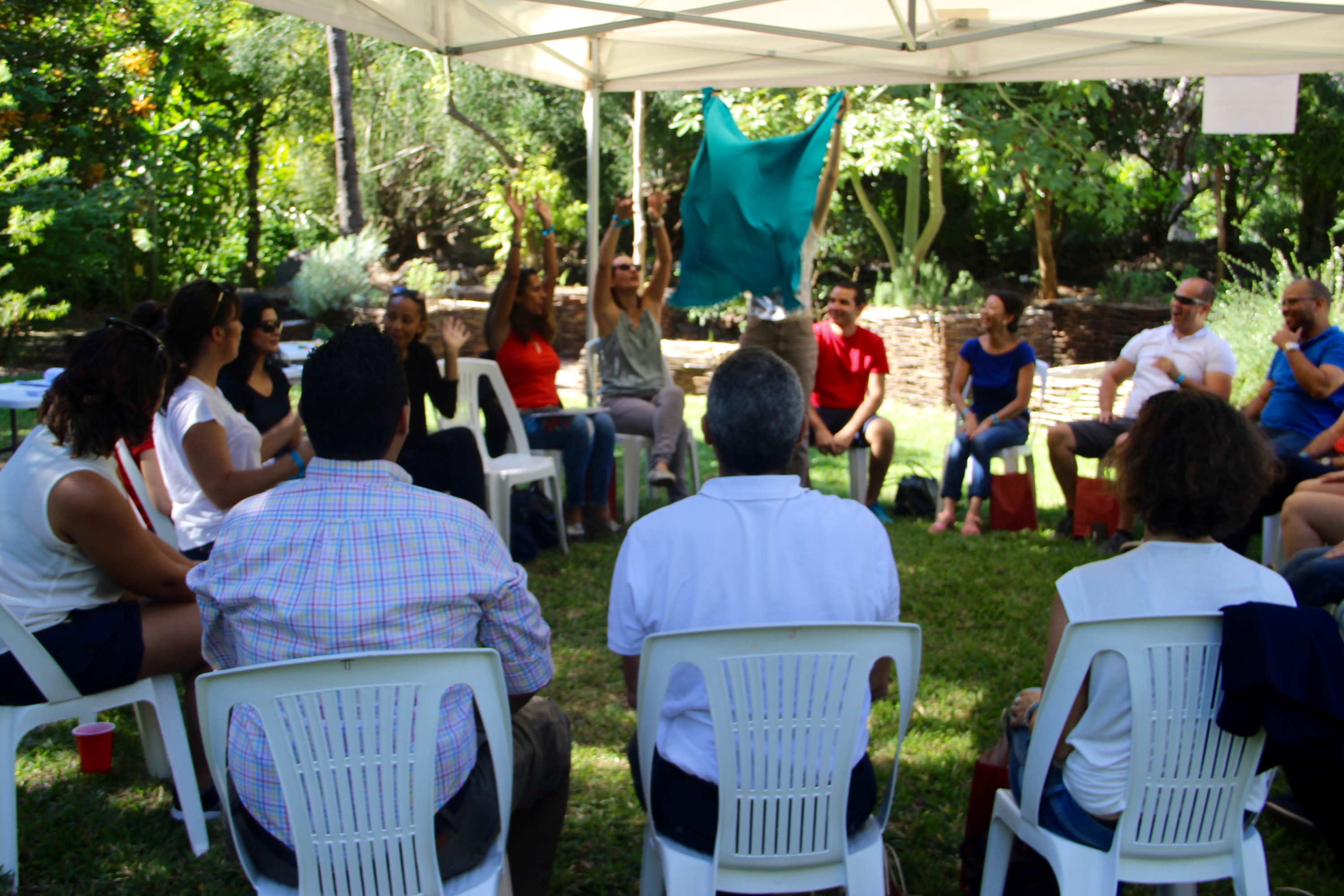 Les participants, venus seuls ou en groupe, ont été répartis de manière aléatoire dans 5 clans, chacun représenté par une couleur. Leur premier défi a été d’imaginer en seulement 10 minutes un nom et un « un cri de ralliement » qui allaient les porter toute la journée. Rien de mieux pour créer de la cohésion d’équipe et de l’énergie !